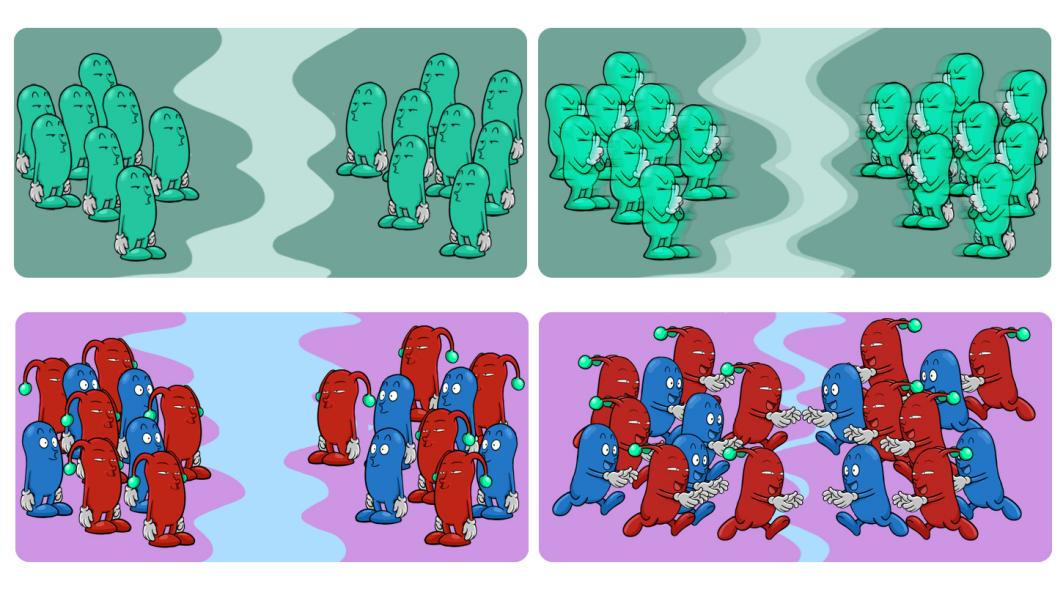 图为传统生物活体自修复材料(靠生长繁殖)和LAMBA自修复材料(靠抗原抗体快速作用修复)修复速度比较图。左上是传统生物活体材料断裂的示意图,右上是修复过程,左下是LAMBA材料断裂的示意图,右下是修复过程的示意图。 来源:凯发k8国际合成所。