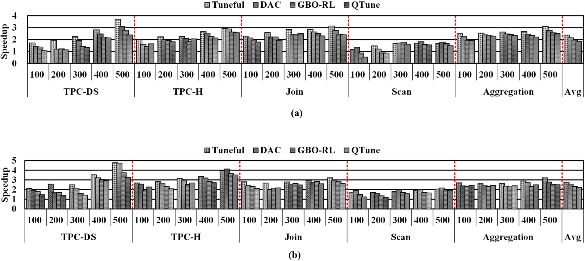 随着Spark SQL框架的广泛使用,Spark SQL的配置参数优化始终是一个难以解决的问题。现有的机器学习优化方法由于优化时间成本高、无法很好适应所处理的数据量变化而难以实际应用。该项研究针对这一难题研究出了低时间成本、能够适应输入数据集大小变化的配置自动优化方法LOCAT,由三个核心技术组成。第一时间,我们设计了query与配置参数敏感性分析技术。在收集训练样本时,从给定工作负载中识别并删除与配置参数不敏感的query。其次,对于其余的query,LOCAT顺利获得计算相关性系数来识别重要的配置参数,然后应用核主成分分析来降低配置参数搜索维度。最后,LOCAT设计了感知数据集大小的贝叶斯优化来搜索最优配置,以便能根据数据集的大小自动优化性能。基于TPC-DS、TPC-H与HiBench测试基准的实验表明,分别在8台高性能x86服务器的集群环境与4台高性能ARM服务器的集群环境下,较当前最先进的自动调优解决方案LOCAT降低优化时间成本达9.7倍,而且取得了高达2.8倍的性能提升。