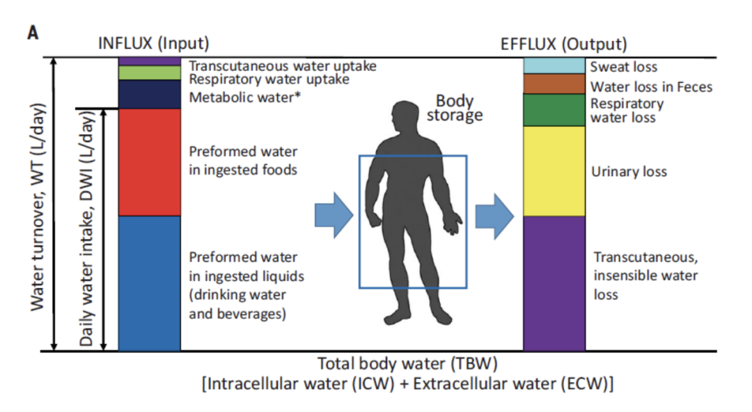 水是生命之源。没有水,人类只能生存三天。人体每天的水周转量(Water Turnover)即水的总交换量,包括了我们摄入的水分和流失的水分,在很大程度上反映了人们的需水量。