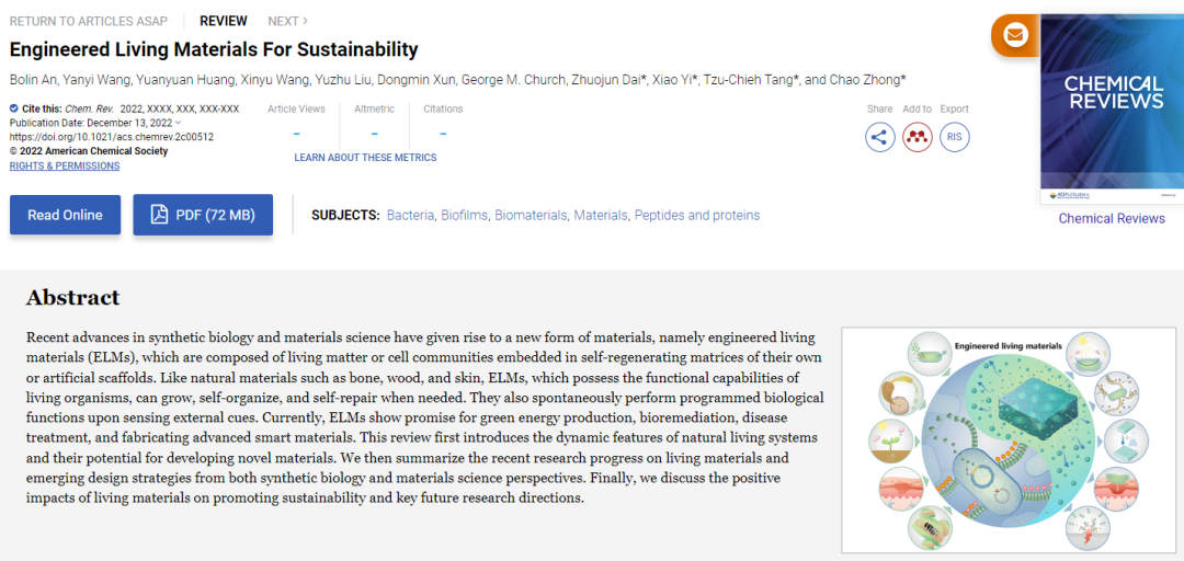 Chemical Reviews | 工程活材料与可持续开展