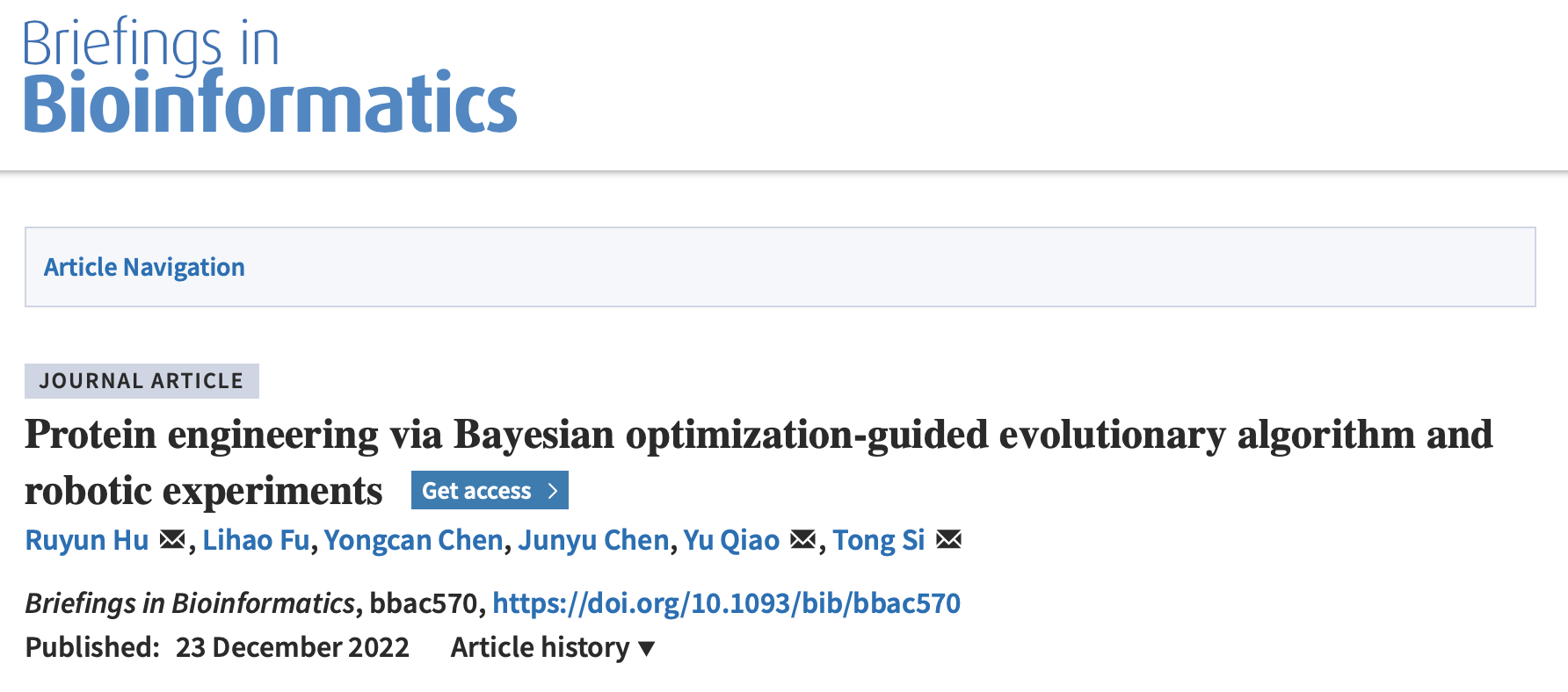 Briefings in Bioinformatics | 人工智能算法指导实验机器人进行蛋白质工程改造
