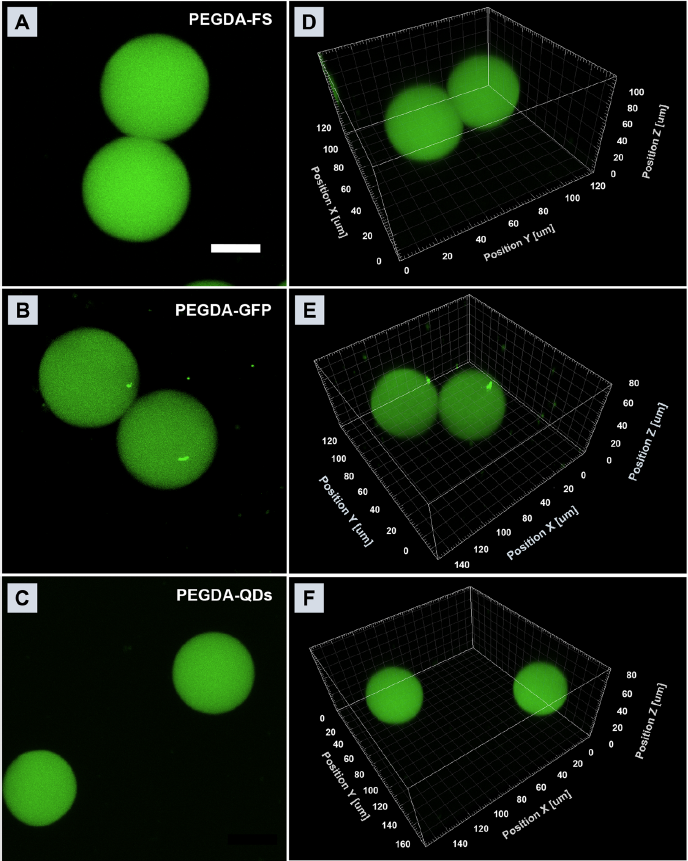 图2:三种荧光微球的荧光图像和激光共聚焦3D荧光图像
