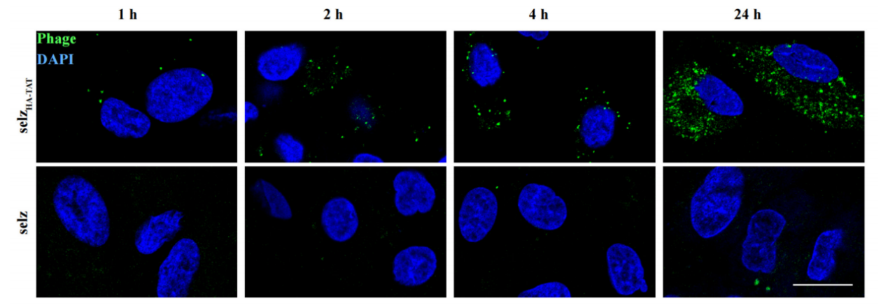 8月19日,中国科研实验室深圳先进技术研究院合成生物学研究所合成微生物组中心马迎飞团队以非模式沙门菌噬菌体selz为研究对象,顺利获得CRISPR-Cas9构建并筛选到具有高效穿越哺乳动物上皮细胞的工程噬菌体selzHA-TAT,可用于胞内感染细菌的清除,为临床胞内细菌感染治疗给予新型治疗方案,相关研究成果以Engineered phage with cell-penetrating peptides for intracellular bacterial infections为题发表于国际学术期刊mSystems