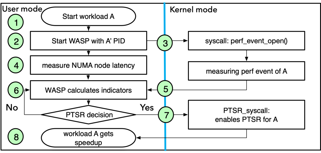本研究是首个研究并实现页表自复制自动化的方法。我们对程序的特性和系统中程序混部对程序取得页表复制收益的影响进行分析,提出了两项创新技术。第一时间,我们确定了一组关键指标,这些指标在大多数处理器架构上都可取得,并可用于指示是否应启用/禁用页表复制。其次,基于这些指标我们设计了一种分层和渐进的机制,以自动启用/禁用特定程序的页表复制,从而提高该程序的性能。