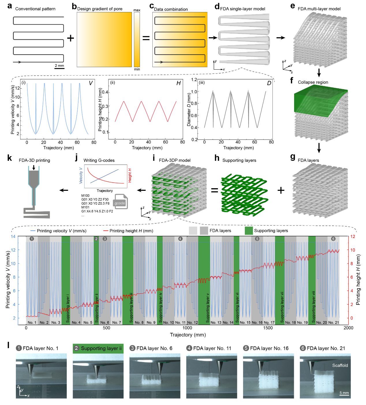2. FDA-3DP新策略设计和制造梯度多孔结构。