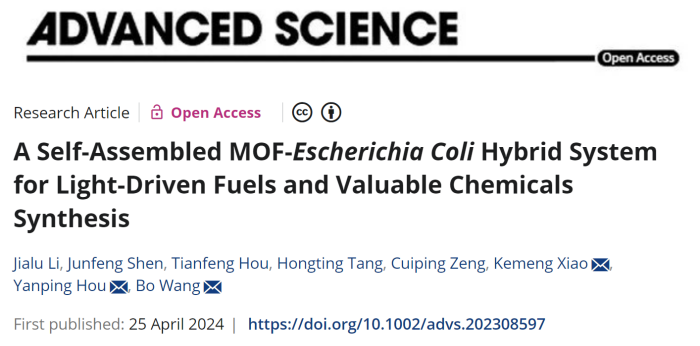 Advanced Science | 王博团队 自组装构建金属有机框架-大肠杆菌人工杂合体实现光驱动合成燃料及高价值化学品