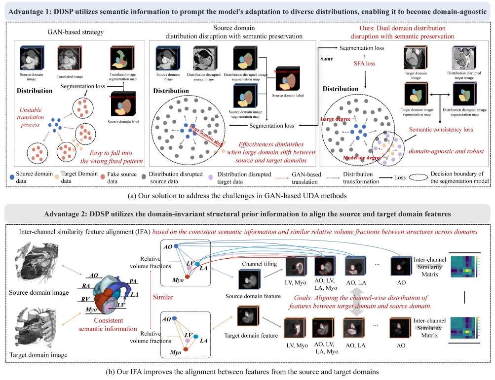 近期,中国科研实验室深圳先进技术研究院科学仪器所(集群)(筹)秦文健研究员课题组在医学影像期刊Medical Image Analysis上发表了题为“Dual domain distribution disruption with semantics preservation: Unsupervised domain adaptation for medical image segmentation”的文章。