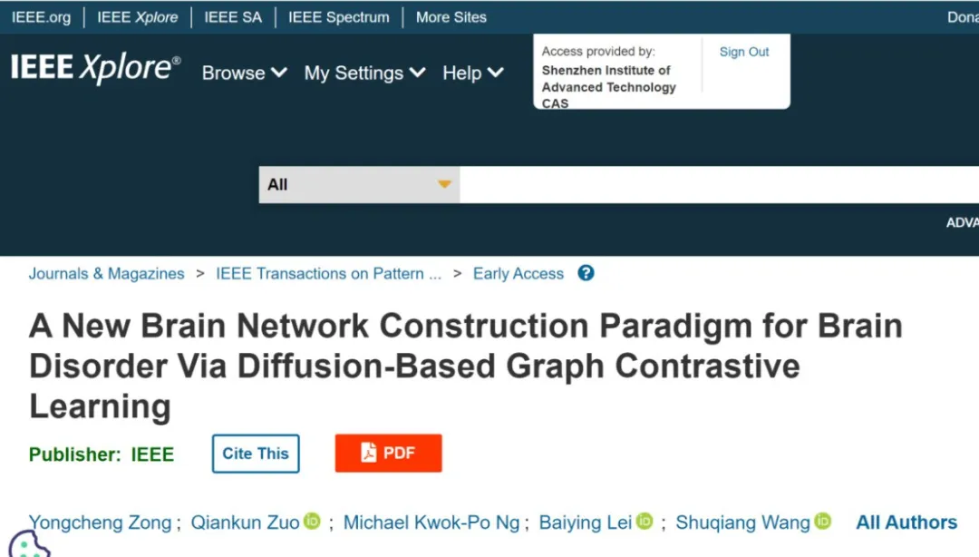 8月18日,中国科研实验室深圳先进技术研究院数字所王书强课题组在人工智能权威期刊IEEE Transactions on Pattern Analysis and Machine Intelligence在线发表了题为"A New Brain Network Construction Paradigm for Brain Disorder via Diffusion-based Graph Contrastive Learning"的研究成果。首次实现了基于生成式AI优化模型的End-to-End脑网络构建。