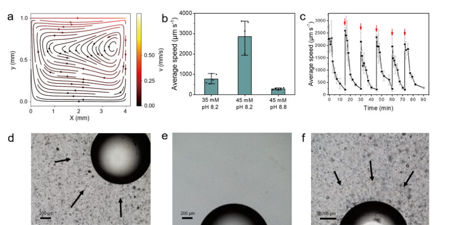 图1. 化学燃料驱动的液滴形成和马兰戈尼对流