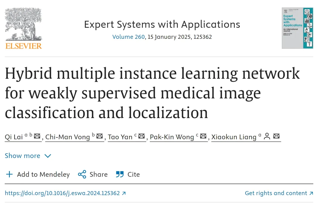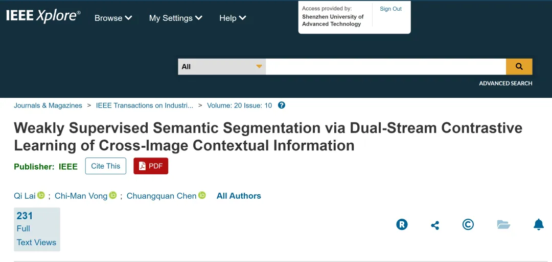 相关成果在期刊IEEE Transactions on Industrial Informatics上以“Weakly-supervised Semantic Segmentation via Dual-stream Contrastive Learning of Cross-image Contextual Information”为题,在期刊Expert Systems With Applications上以“Hybrid Multiple Instance Learning Network for Weakly Supervised Medical Image Classification and Localization”为题分别进行了发表。
