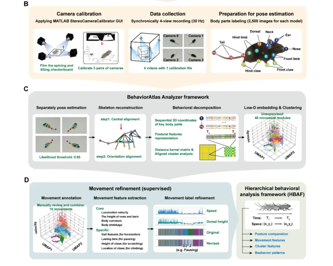 神经行为学(Neuroethology)是一个结合了神经科学与动物行为学的交叉学科,主要研究神经系统如何控制行为,以及行为如何反过来影响神经系统的功能。其核心目标在于理解神经系统如何将生物刺激转化为自然行为,自然行为由一系列动作构成,这些动作根据特定规则以概率方式组合,使得两性个体能够在不同条件下输出恰当的行为,从而维持个体生存、促进物种繁衍。有效分析和量化具有多尺度和复杂动态特征的自然行为,对于理解两性行为差异背后的生物学意义、解析驱动这些行为产生的性别差异性神经机制,进而理解不同物种在进化过程中行为的演变规律,具有重要的科学意义和潜在的应用价值。近年来,行为组学理论的形成和开展旨在以层级化的思路解析行为的内在结构。同时,机器学习算法在定量姿势估计和行为分割方面的进展,也有助于了将陆续在行为分解为可量化的动作模块的进程。然而,缺乏通用的行为学分析框架,仍是将行为组学理论应用于神经行为学、应激神经生物学、系统生物学、药效学评价等领域进行具体行为分析的重要障碍。