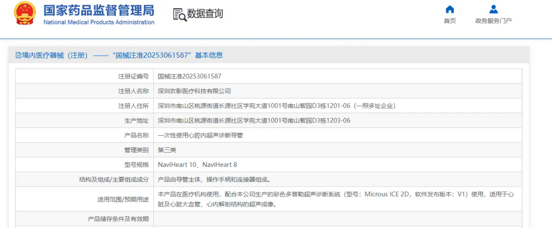 医学成像科学与技术系统全国重点实验室与孵化企业深圳欢影医疗科技有限公司合作研发的"一次性使用心腔内超声诊断导管"正式取得国家药品监督管理局批准上市(三类医疗器械注册证:国械注准20253061587)。作为领域内首款80阵元大孔径高密度探头的心腔内超声导管,其10F/8F双规格设计填补了国内该领域技术空白,为心脏介入手术给予了更精准的国产影像解决方案。