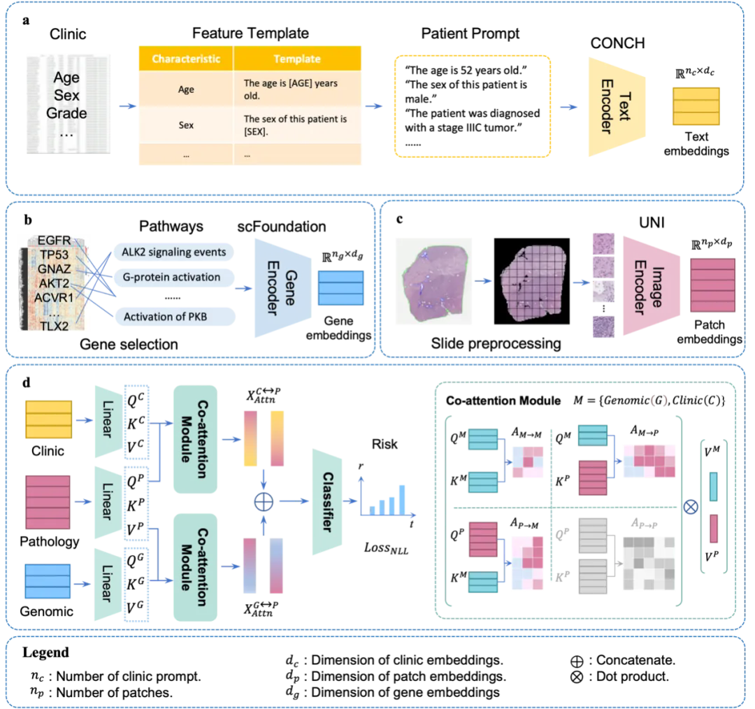 癌症患者的预后情况,是制定个性化治疗方案的核心依据,但肿瘤具有高度异质性,给精准评估预后带来了巨大挑战。现在,多模态研究多集中在病理影像与基因组数据,而能反映患者整体健康状况的临床信息,因存在离散、稀疏、维度低等特性,尚未被充分挖掘利用,这也导致传统方法难以精准评估预后风险。