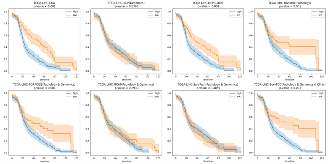 图3:各模型在TCGA-LIHC数据集上的KM曲线